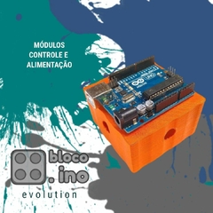 Os kits de montagem com peças plásticas são uma excelente ferramenta de exploração da criatividade e de habilidades manuais. Agora imagine utilizar também blocos que permitam controle e movimento, por meio do Arduino e de pequenos sensores conectados. Isto é o Kit Bloco.ino. Blocos modulares, convencionais, amalgamados com dispositivos para arduino, que utilizam o mesmo padrão estrutural dos blocos para permitir a construção de robôs de diferentes formas e tamanhos.